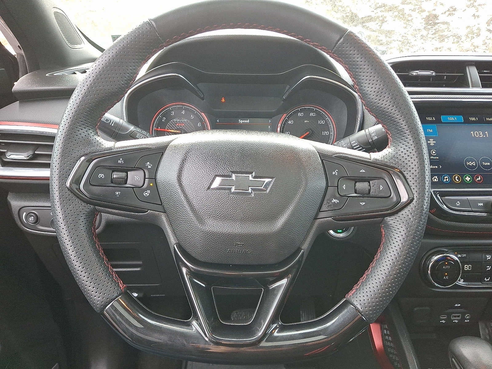 All Wheel Drive, Heated Driver Seat, Onboard Communications System, Aluminum Wheels, Remote Engine Start Chevrolet RS with Mosaic Black Metallic exterior and Jet Black with Red accents interior features a 3 Cylinder Engine with 155 HP at 5600 RPM*. Non-Smoker vehicle